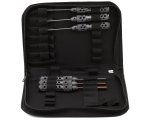 The ProTek RC "TruTorque" 1/10 Tool Bag Set comes equipped with essential hex and nut drivers, making it a complete package for RC enthusiasts. The set includes hex drivers in 1.5mm, 2.0mm, and 2.5mm sizes, along with nut drivers in 5.5mm, and 7.0mm sizes and a 2.0mm Ball End Hex Driver. Each tool fits securely in the bag's elastic slots, with space to hold eighteen additional tools for a total capacity of twenty-four tools. With a convenient carry strap and a carefully designed layout, this tool bag ensures that your tools remain organized and protected during transport, helping you work more efficiently and with confidence.